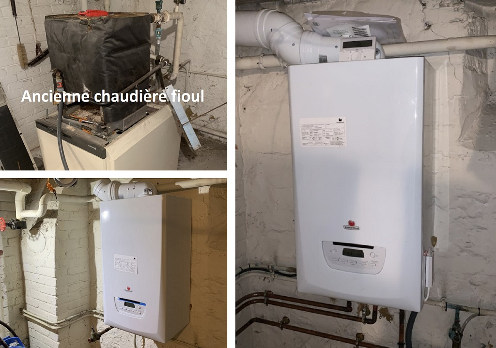 Démontage et remplacement de la chaudière fuel par une chaudière murale gaz Saunier Duval Sémiafast